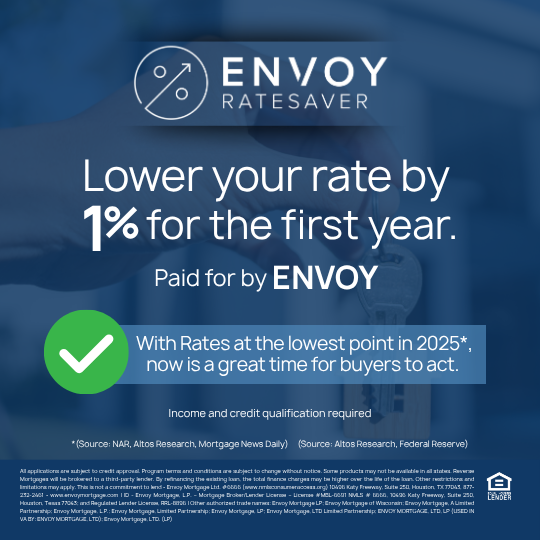 Rates are down—and you can help further motivate buyers with the Envoy Rate Saver program. Envoy covers the cost of a 1% rate reduction for the first year, giving your clients lower monthly payments right out of the gate.